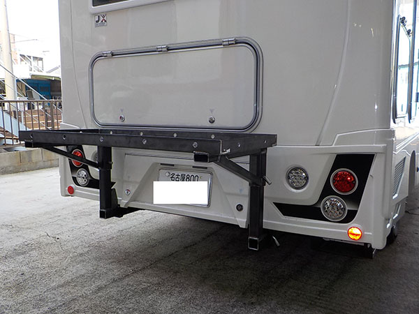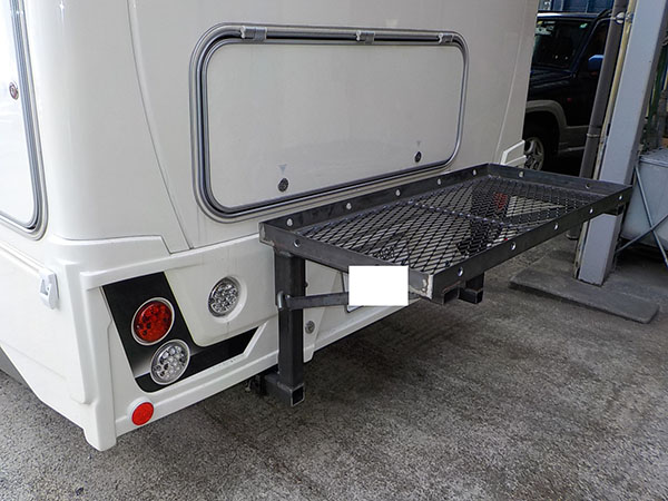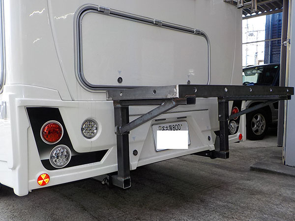 カムロードのキャブコンバージョンに特注ヒッチマウントキャリア製作取り付けしています。